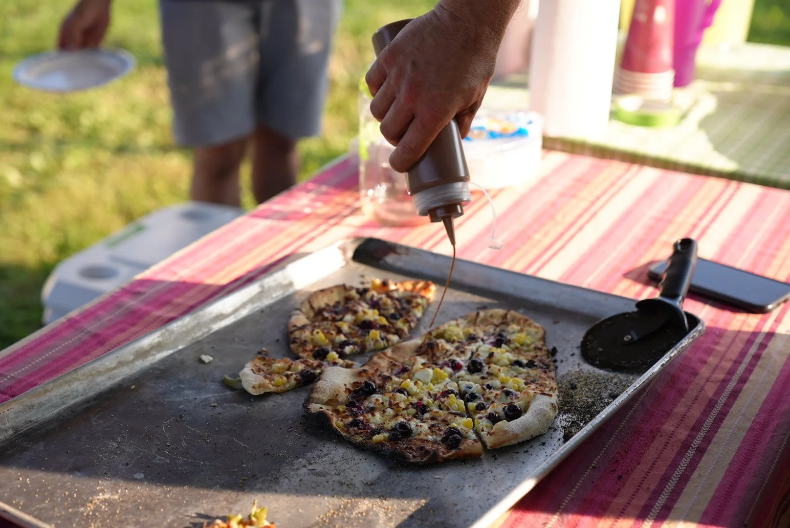 We offer 4 different kinds of pizzas each evening, one of which will always be a cheese. Each pizza will include freshly harvested, organically raised veggies from our own farm, as well as other meats, cheeses, and veggies from other local producers. They’re cooked and served buffet style, with pizzas constantly rotating in and out of the oven for the duration of the evening.