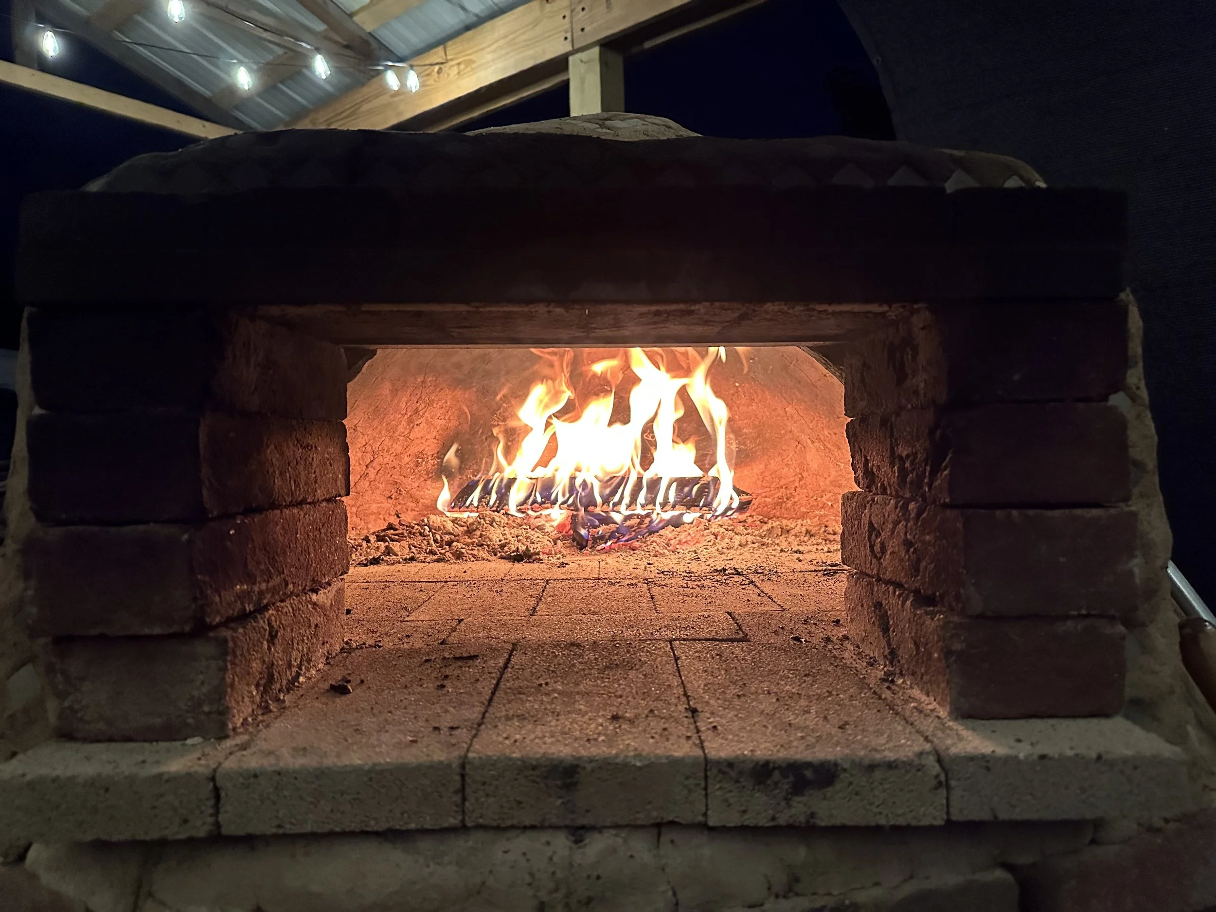 Part of the mission of our farm, from the very beginning, has been to be a place around which community can gather. Growing healthy, safe food for people has been the largest part of the that mission thus far. But the newest and exciting addition to the farm’s offerings is PIZZA NIGHT! At least twice a month, we hope to offer a night of farm fresh, wood-fired pizza to customers in our community. Our pizzas are baked in our New Mexico style earthen oven, hand built using the clay soil right from our farm. Cooking at ~800 degrees, each pizza is in the oven for less than 3 minutes, then out on the buffet for eating.